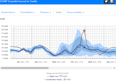 You can see (below) that by noon Tuesday how narrow the isobars (representing air pressure difference) are over western Washington, and particularly over the Olympic Peninsula.